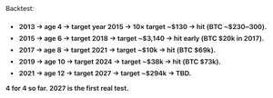 Bitcoin gjør en 10 ganger på 0,5 i dagens alder. Dette følger av potensloven. Forventningene er 300 000 innen 2027. HT @sminston_with / @moneyordebt