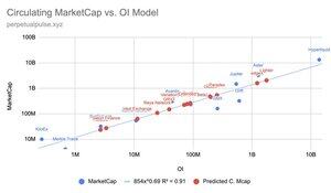 Het verwijderen van MYX uit het model, OI verklaart *91%* van de circulerende marktkapitalisatie van bestaande perp dexes