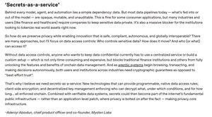 "每个模型、代理和自动化背后都有一个简单的依赖关系:数据" 🦭 @a16zcrypto 的《2026年大想法》包含了 @EmanAbio 的见解,探讨了为什么 "秘密即服务" 是下一个进化阶段 可验证的数据 + 可编程的隐私 = 自主系统的基础